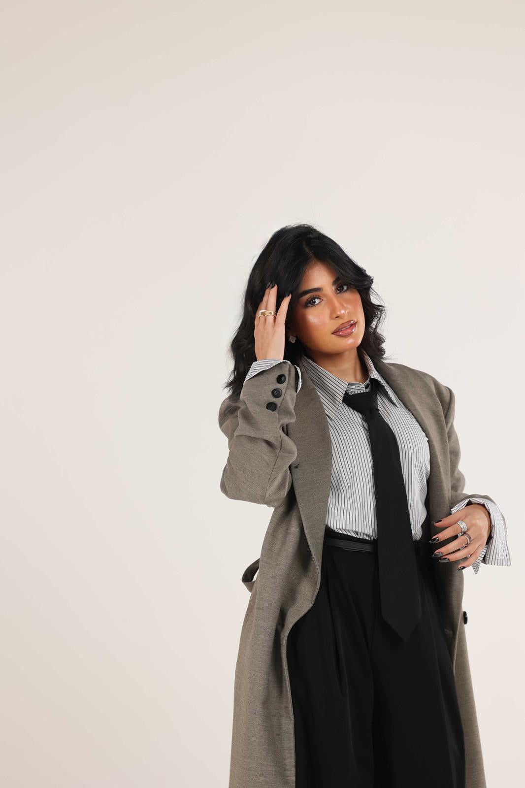Designed in timeless beige, gray, and black, this longline blazer brings effortless sophistication to any look. Its classic cut and clean structure make it endlessly versatile: style it with denim and a tee for everyday chic, belt it and wear it as a dress for an elevated moment, or throw it over your favorite outfits for an instant polished finish.