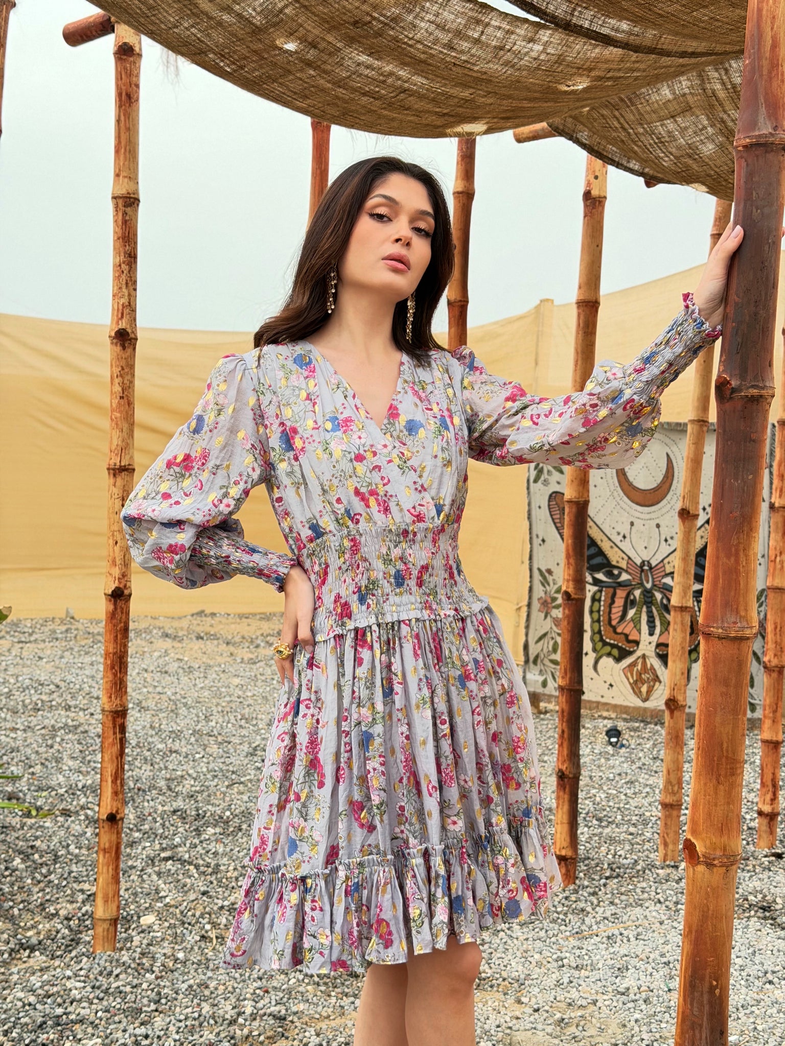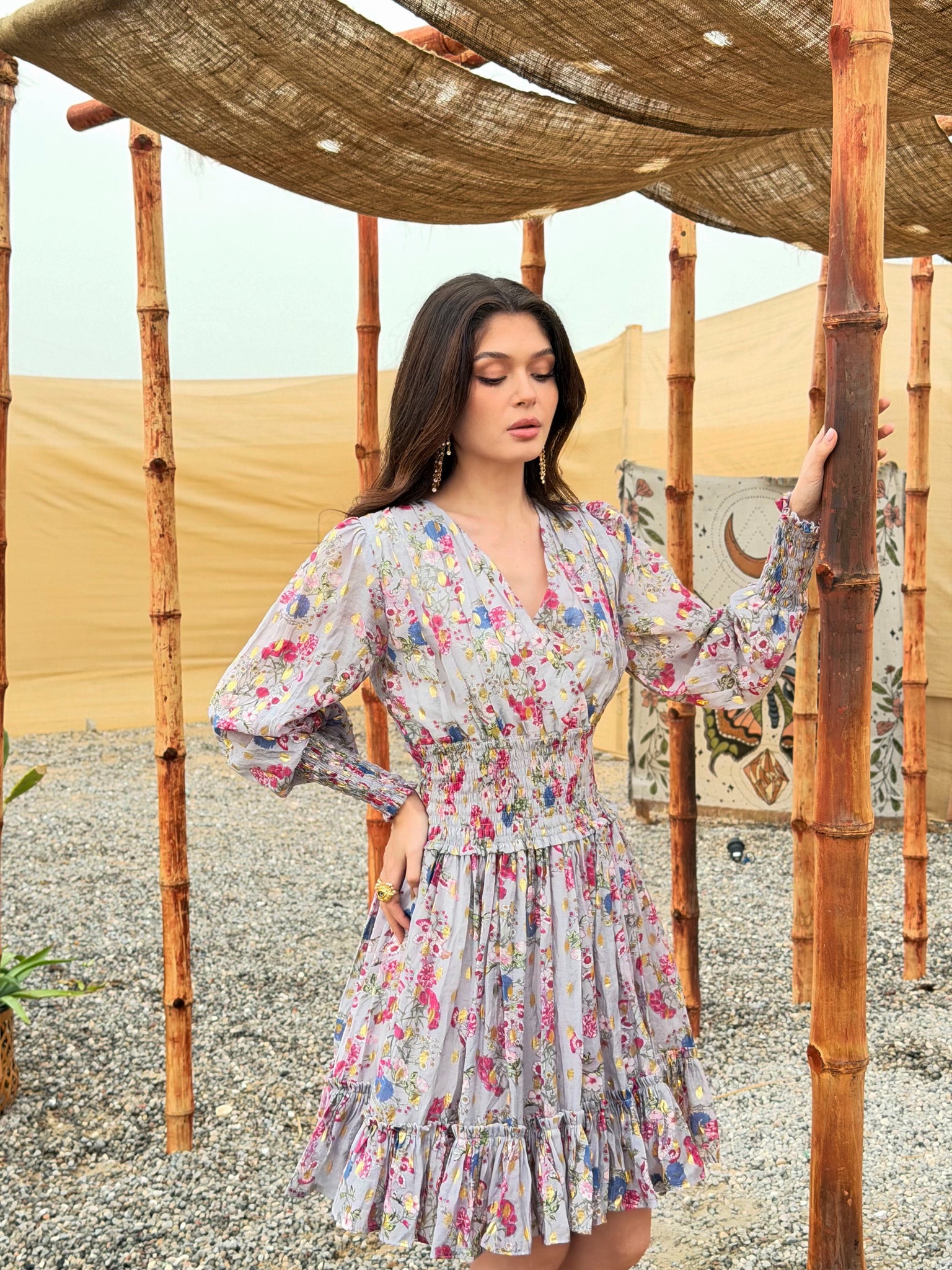 Luna Dress is a softly structured floral piece designed to flatter effortlessly. Featuring a gently cinched waist and flowing skirt, it creates a beautifully feminine silhouette with ease and movement. The lightweight fabric and romantic print make Luna ideal for daytime & eid gatherings.