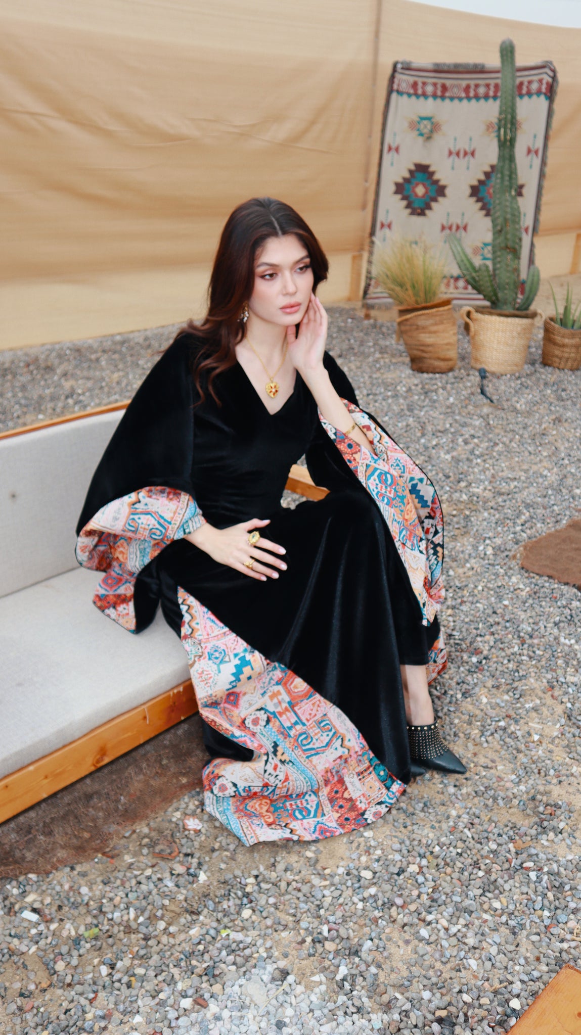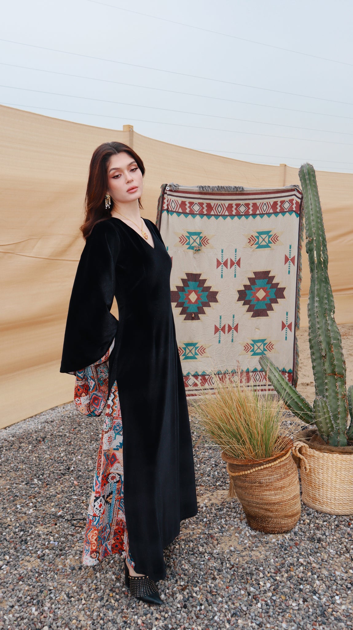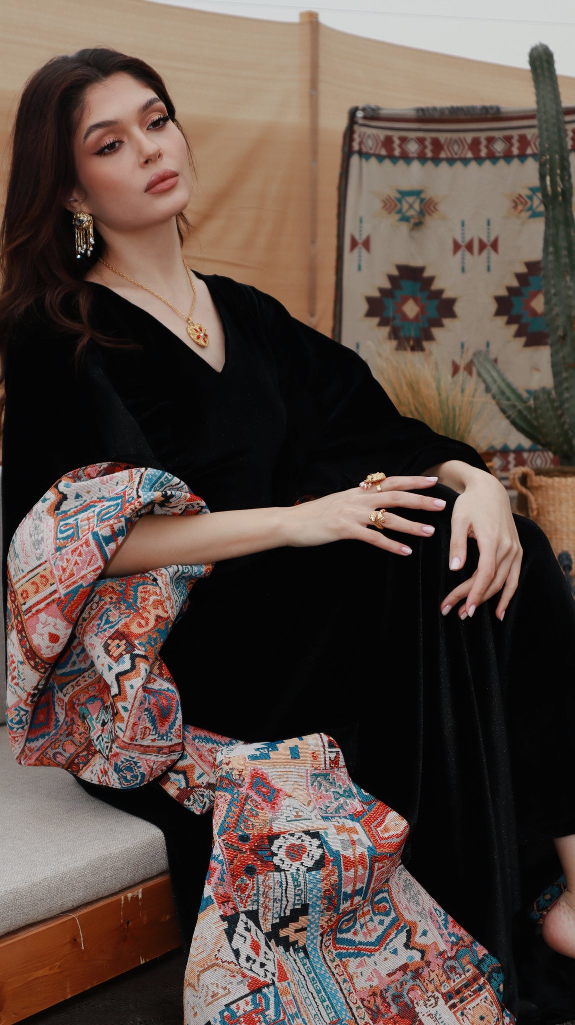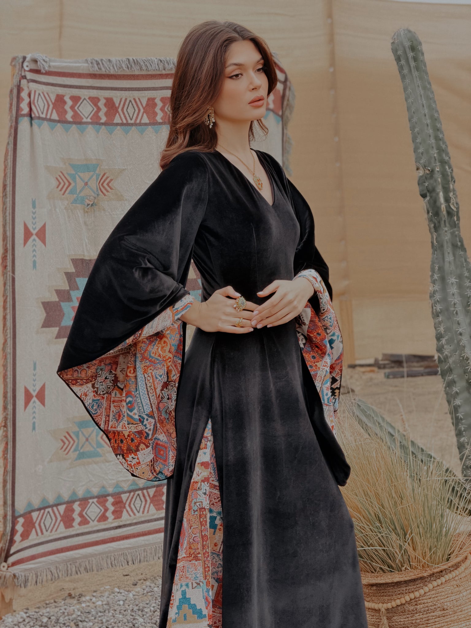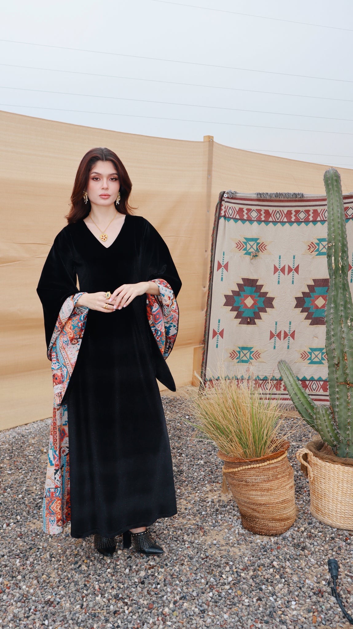 Where heritage meets modern elegance. Inspired by desert nights and ancestral weaving, Velvet Sadu blends rich black velvet with bold Sadu motifs to create a piece that tells a story. Graceful, and powerful, it reflects the beauty of tradition reimagined for the modern woman.
