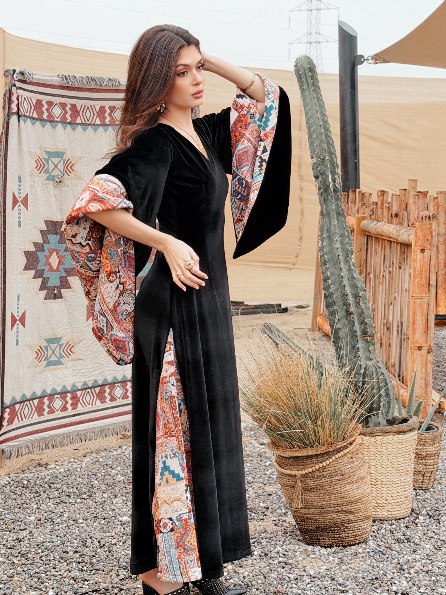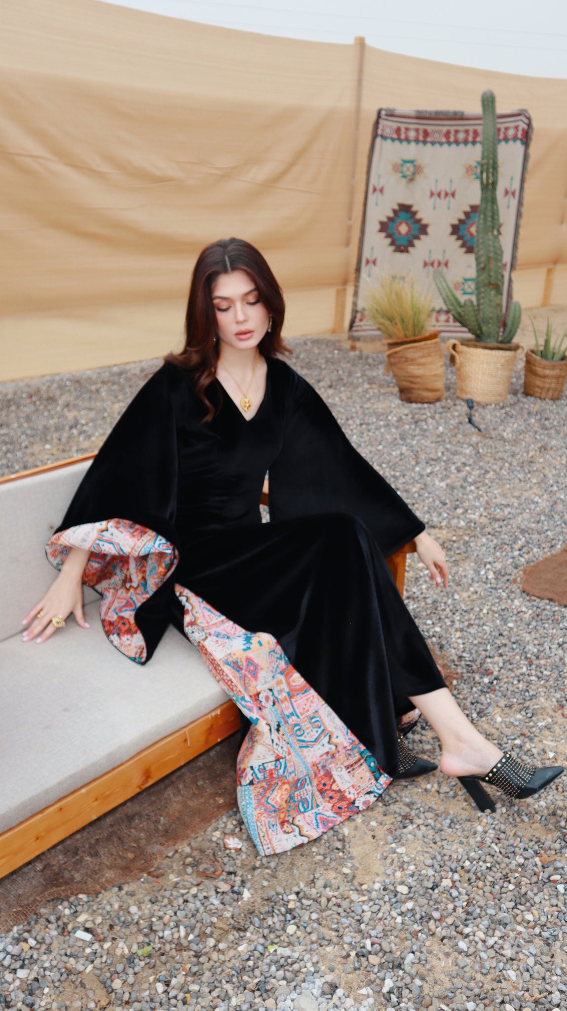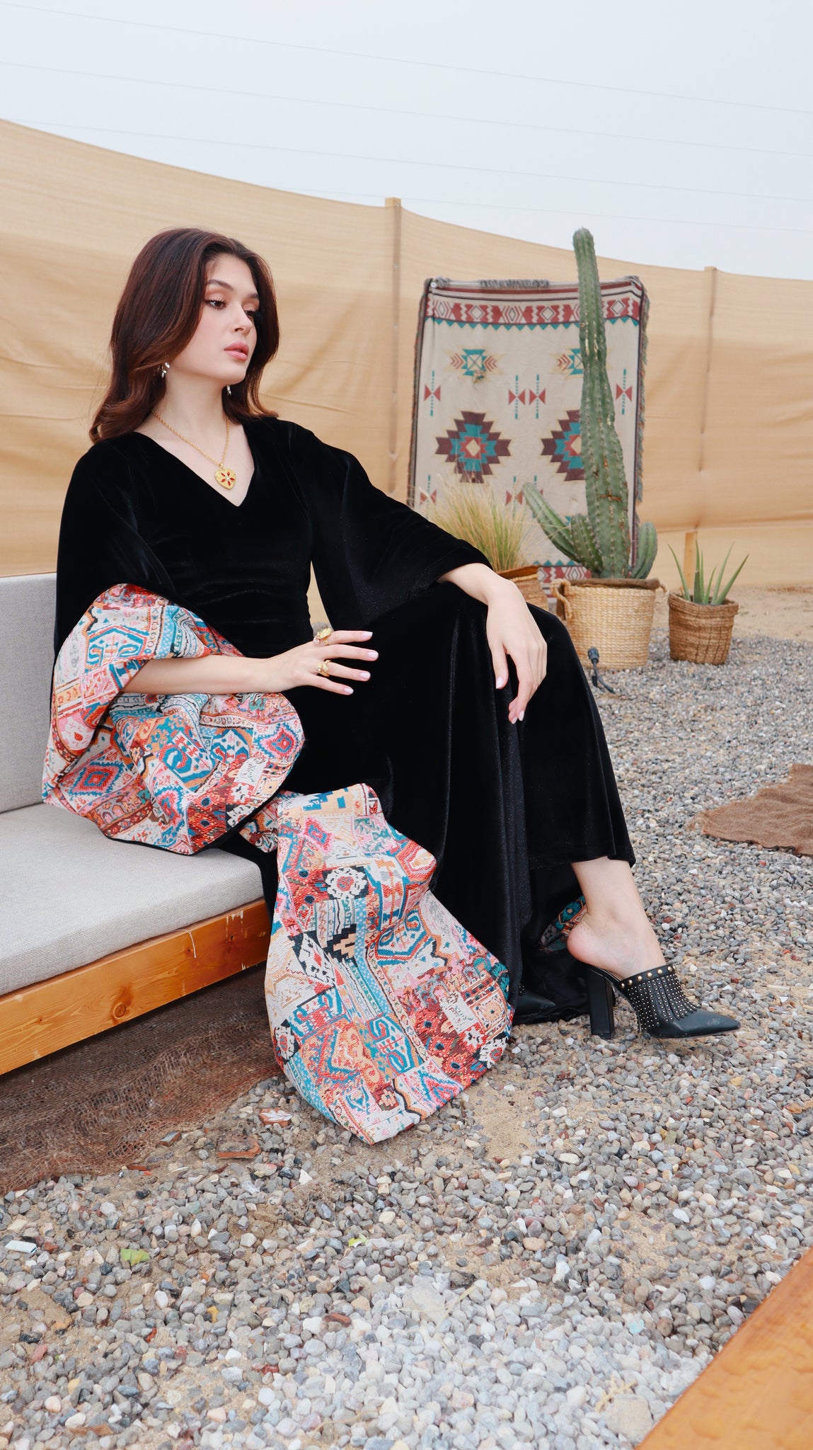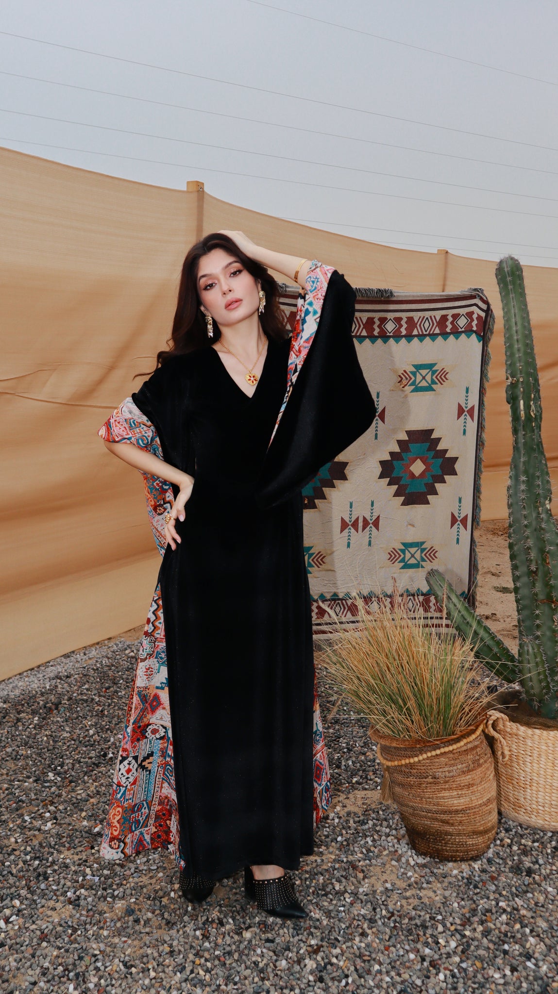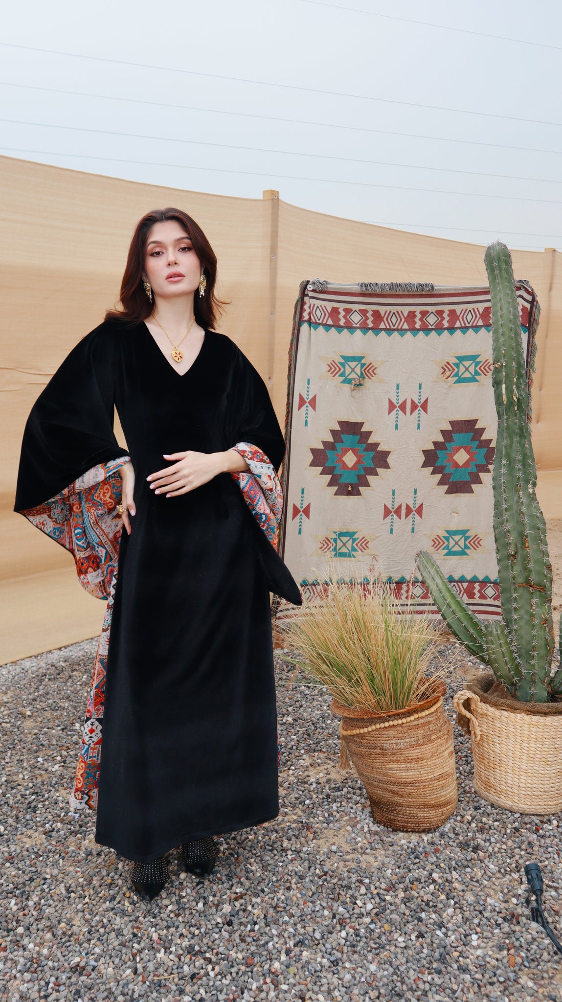 Where heritage meets modern elegance. Inspired by desert nights and ancestral weaving, Velvet Sadu blends rich black velvet with bold Sadu motifs to create a piece that tells a story. Graceful, and powerful, it reflects the beauty of tradition reimagined for the modern woman.