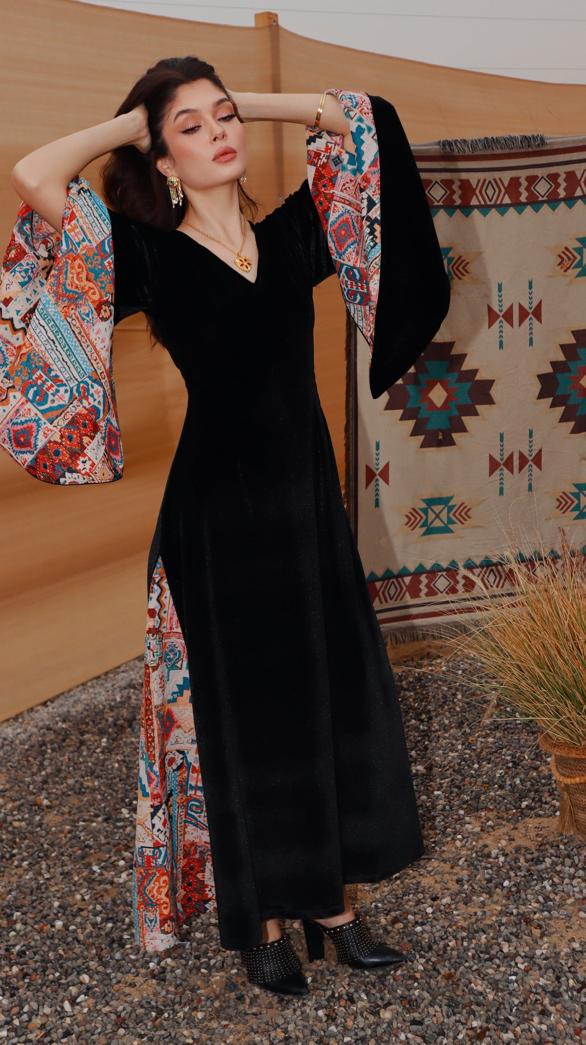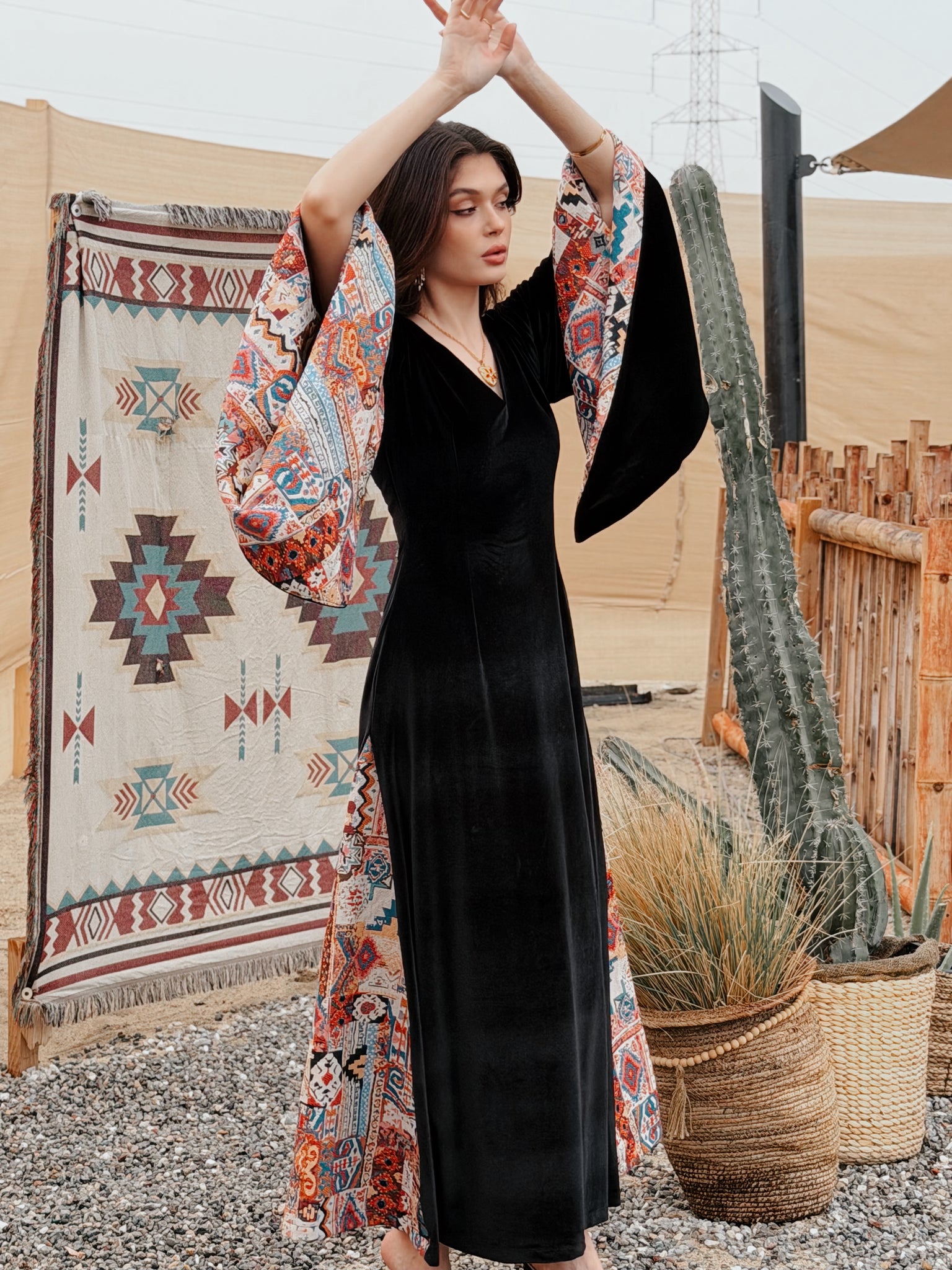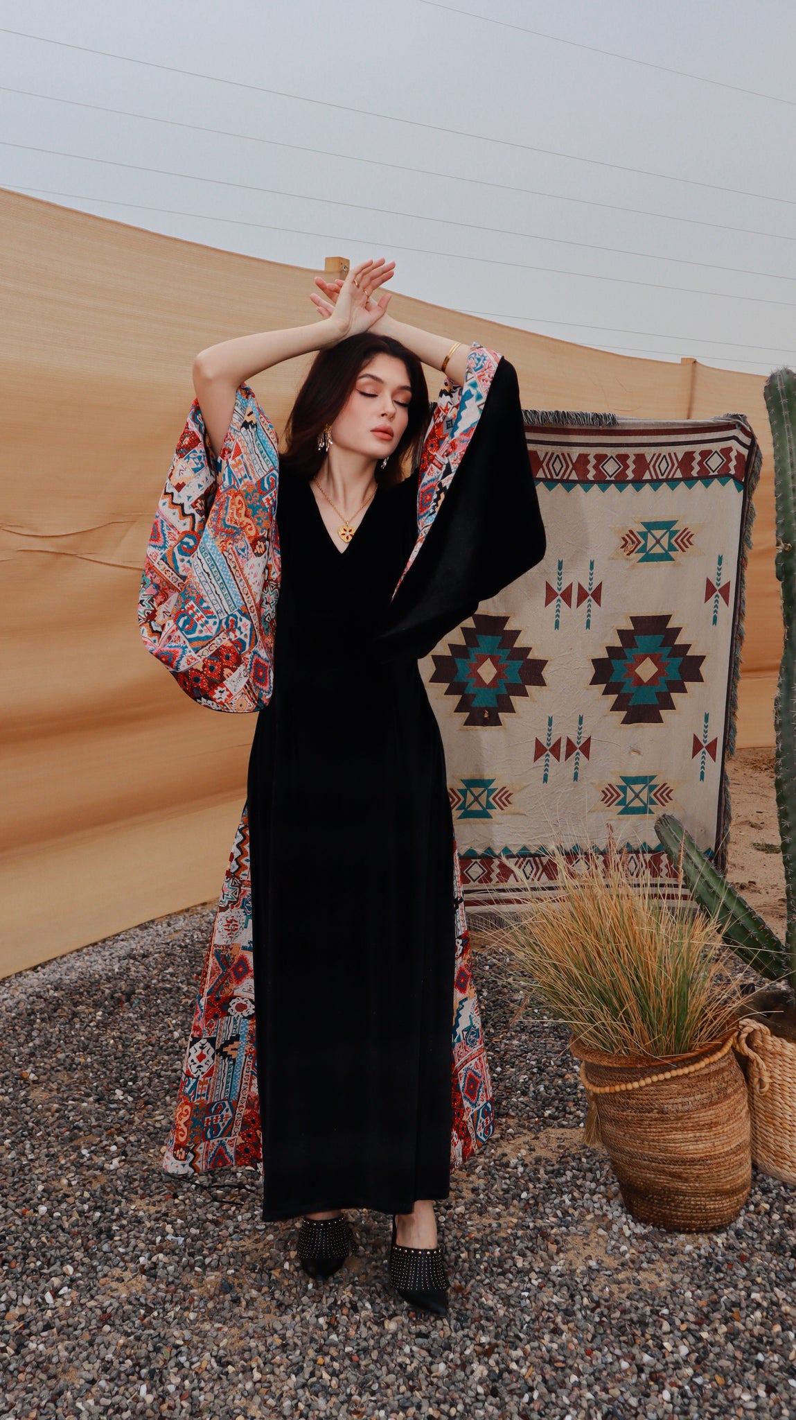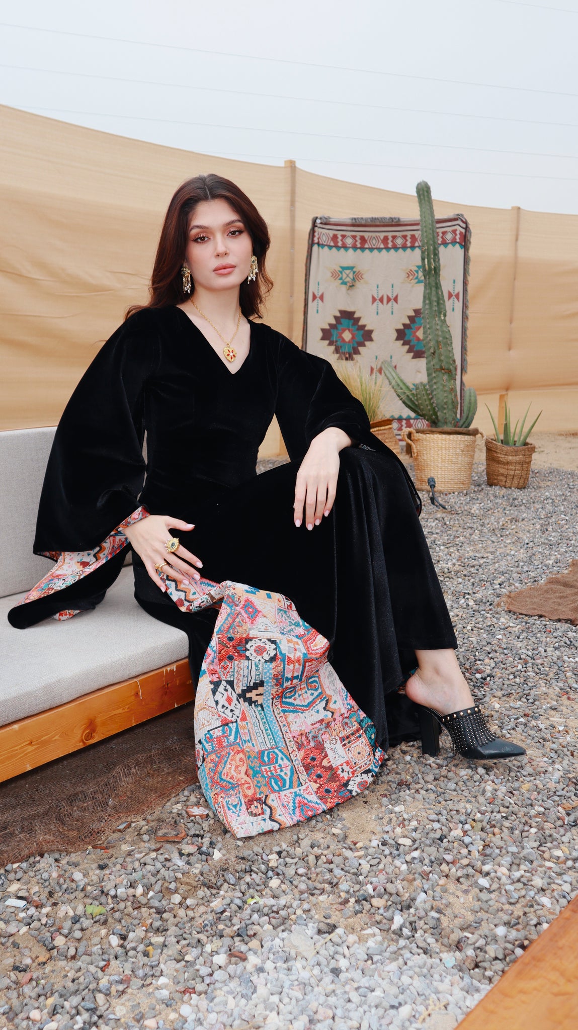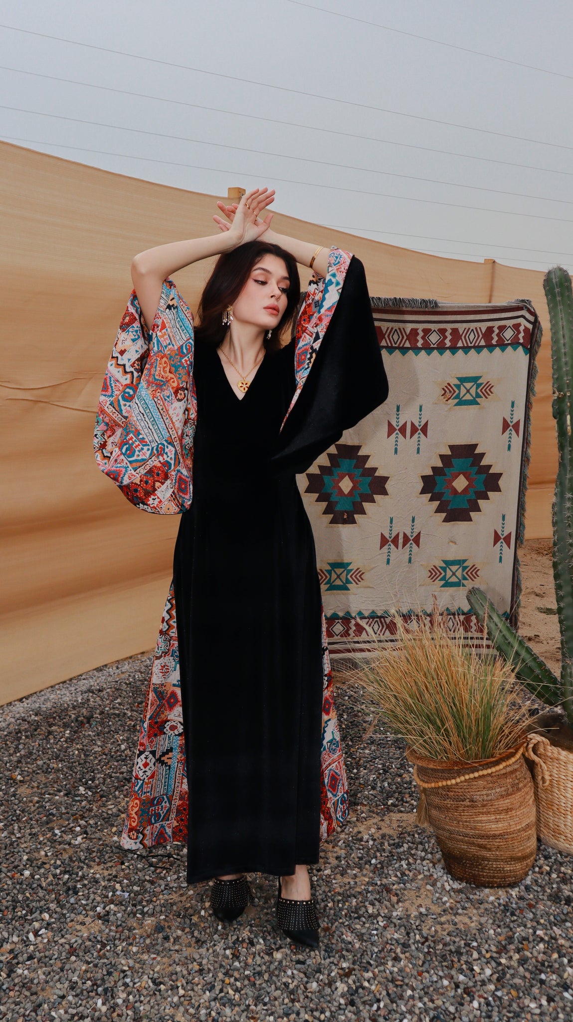 Where heritage meets modern elegance. Inspired by desert nights and ancestral weaving, Velvet Sadu blends rich black velvet with bold Sadu motifs to create a piece that tells a story. Graceful, and powerful, it reflects the beauty of tradition reimagined for the modern woman.